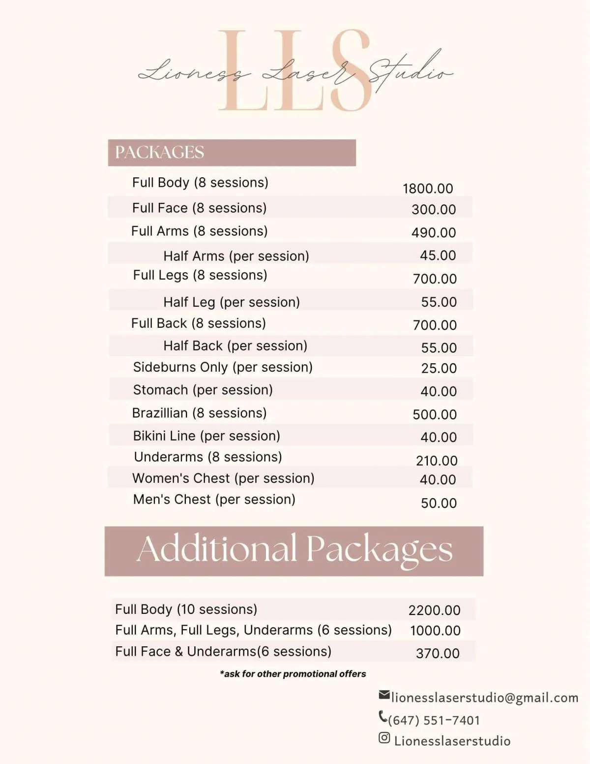You’ll get a $100 credit toward any full body package if you choose to upgrade after your promo session. Totally optional.